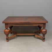 Eiken uitschuifbare bolpoottafel, het onderstel met regelverbinding tussen de poten, 20e eeuw, 75,5 × 150 × 95, de bladen 62 × 95 cm
