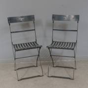 Twee opklapbare groengelakte stalen tuinstoeltjes, eerste helft 20e eeuw