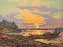 U K(h)in Maung (1910-1983), bocht in de Irrawaddy, Myanmar, olieverf op paneel, l.o. gesigneerd en gedateerd '62, 60 × 90 cm
