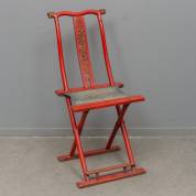 Roodgelakte opklapbare stoel met gevlochten zitting, China, begin 20e eeuw