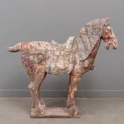 Chinees houten beeld van een paard met resten van polychromie, 77 × 87 × 27 cm