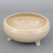 Chinees celadon wierookvat op drie poten en met ingekerfd bloemdecor, Ming of ouder, 13 × Ø 28 cm