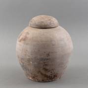 Grijze Chinees aardewerk dekselpot, Noord-China, Han-dynastie, 30 × Ø 27 cm, herkomst: E. Pranger Oriental Art, 2003