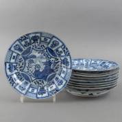 Tien Chinees porseleinen borden met blauw-wit bloemecor in Wanli-stijl, gemerkt, begin 18e eeuw -meerdere randschilfers en haarlijnen-, circa Ø 21,5 cm