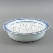 Diep Chinees porseleinen bassin met treef, de de schotel met blauw-wit tuinendecor, Qianlong -treef met haarlijn maar verder in goede conditie-, 7,8 × Ø 33,5 cm