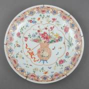 Chinees porseleinen schotel met famille rose bloemenmanddecor, Kangxi gemerkt, Guangxu, Ø 40 cm