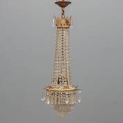 Drielichts kroonluchter, de messing monturen met palmetten en strikken, lengte 95 cm