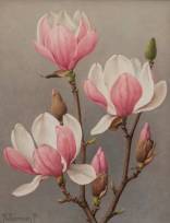 Jan Voerman jr. (1890–1976), magnoliatak in bloei, olieverf op vermoedelijk schilderskarton, l.o. gesigneerd -volgrecht van toepassing-, 29 × 23 cm