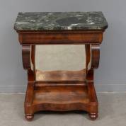 Mahonie trumeau met groen marmeren blad en spiegelachterwand, biedermeier, 80 × 66 × 41 cm