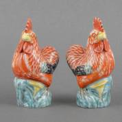 Paar kleine Chinees porseleinen hanen, 19e/20e eeuw, hoogte 15 cm