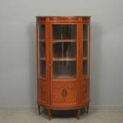 Halfronde satijnhouten vitrinekast met inlegwerk, Louis Seize-stijl, circa 1900 -defecten-, 145,5 × 69 × 36,5 cm