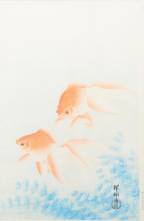 Ohara Koson (1877-1945), twee goudvissen, Japanse houtdruk, gesigneerd, 1926, Watanabe Color Print Co., mogelijk latere uitgave, 38 × 25 cm