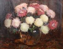 Frans Oerder (1867-1944), stilleven met bolchrysanten, olieverf op doek, r.o. gesigneerd, 81 × 101 cm