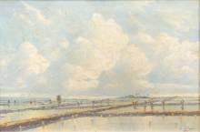 Leo Eland (1884-1952), gezicht op Indonesische rijstvelden, olieverf op doek, r.o. gesigneerd -enige bruine aanslag en druppels op verflaag-, 40 × 60 cm