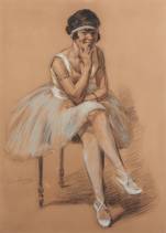 Louis Soonius (1883-1956), portret van een zittende ballerina, krijttekening op papier, l.o. gesigneerd en gedateerd 1922, 60 × 44 cm