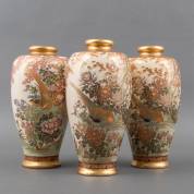 Drie Japanse Satsuma vazen met decor van fazanten, gemerkt Kagaya, Kobe, 20e eeuw, 31 × 14 cm