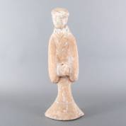 Chinese terracotta mingqi: 'fat lady', Tang-stijl en vermoedelijk periode -scheurtje in sleep van het gewaad-, 38 × 12 × 11 cm