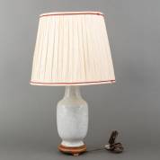 Chinees porseleinen guan-ware vaas op houten basement, vermaakt tot tafellamp, 19e/20e eeuw -bodem doorboord, opgevulde randchip-, exclusief kap 37 cm