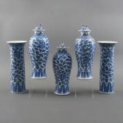 Vijfdelig Chinees porseleinen kaststel met blauw-wit floraal decor, Zhengde gemerkt, 19e eeuw -defecten-, hoogte 31,5 cm