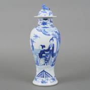 Chinees porseleinen balustervaas met blauw-wit lange lijsdecor, Kangxi gemerkt, 19e eeuw -paar randschilfers-, 39 cm