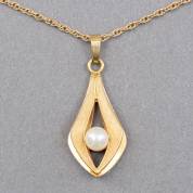 14kt gouden hanger gezet met parel aan 14kt gouden anker schakelketting, brutogewicht 6,9 gram, lengte 43 cm