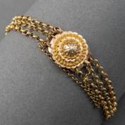 14kt gouden armband van driestrengs jasseronschakels aan 14kt gouden filigrain bakslot en veiligheidsketting, gewicht 6,8 gram, circa 19 cm