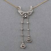 18kt gouden anker schakelcollier met midden voor een goud en zilveren deel van negligécollier gezet met roosgeslepen diamanten, totaal circa 0.30ct, brutogewicht 7,6 gram, circa 45 cm