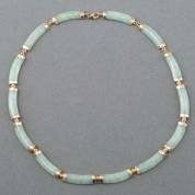 14kt gouden collier met veertien half ronde segmenten jade, brutogewicht 25,2 gram, circa 42 cm