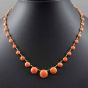 14kt gouden en-chute collier gezet met ronde cabochongeslepen bloedkoraal, brutogewicht 20 gram, 50 cm