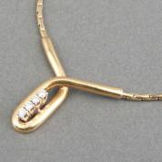 14kt gouden choker van blokschakels met midden voor een lusvormig vast deel gezet met vier briljantgeslepen diamanten, brutogewicht 14,8 gram, 43 cm