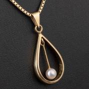 14kt gouden Venetiaans schakelcollier waaraan 14kt gouden druppelvormige hanger met parel, jaren '80, brutogewicht 13,8 gram, collier 60 cm, hanger 4cm