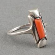2e gehalte zilveren ring gezet met staafvormige bloedkoraal, meester: Fons Reggers, Amsterdam, circa 1920, mt. 16,75, brutogewicht 2,6 gram