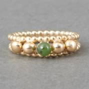 14kt gouden ring met bolletjes en gezet met jade bolletje, mt. 17,5, brutogewicht 5,4 gram,