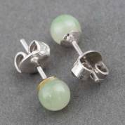 Paar 14kt witgouden oorstekers gezet met jade bol, brutogewicht 1,6 gram