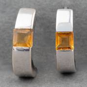 Paar 18kt witgouden creolen gezet met carrégeslepen citrien, brutogewicht 4,0 gram, circa 1,5 cm