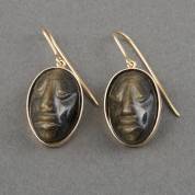 Paar BWGG oorhangers gezet met uit kwarts gesneden gezicht, brutogewicht 7,6 gram, 3 cm -één neus beschadigd-