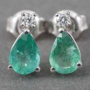 18kt witgouden oorstekers gezet met peergeslepen smaragd en briljantgeslepen diamant, brutogewicht 1,8 gram, circa 1 cm