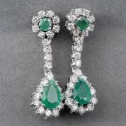 Paar 14kt witgouden oorhangers elk gezet met ronde en peervormige smaragd en 24 briljantgeslepen diamanten, totaal beide oorhangers circa 1.24ct, brutogewicht 10,6 gram, circa 3 cm