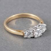 18kt wit- en geelgouden ring gezet met drie briljantgeslepen diamanten, middensteen circa 0.45ct, totaal circa 1.05ct, mt. 18, brutogewicht 3,7 gram