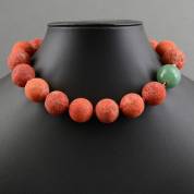 Collier van sponskoraal bollen aan sluiting van aventurijn bol waarin 1e gehalte zilveren sluitmechaniek, 47 cm, bol Ø 23 mm