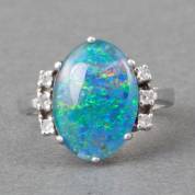 14kt witgouden ring gezet met opaaldoublet geflankeerd door zes achtkantgeslepen diamanten, mt. 17, brutogewicht 5,2 gram