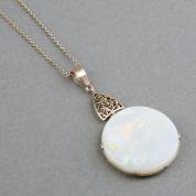 BWGG anker schakelcollier waaraan BWGG hanger gezet met ronde platgeslepen opaal, Ø 25 mm, brutogewicht 7,2 gram, 44 cm