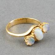 18kt gouden slagring gezet met drie cabochongeslepen opalen, Italië, 20e eeuw. mt. 16,5, brutogewicht 3,8 gram