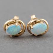 Paar 18kt gouden oorstekers gezet met ovaal cabochongeslepen opaal, brutogewicht 1,8 gram, 0,8 cm