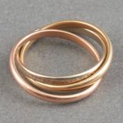 14kt tricolor gouden trinity-ring, mt. 15, gewicht 3,4 gram