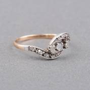 14kt gouden en zilveren ring gezet met roosgeslepen diamanten, mt. 18,5, brutogewicht 1,8 gram