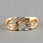 18kt wit- en geelgouden schakelring, gezet met twee achtkantgeslepen diamantjes, mt. 17, brutogewicht 2,6 gram