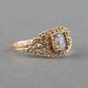 14kt gouden solitairring gezet met roosgeslepen diamant, mt. 18, brutogewicht 4,8 gram