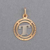 18kt bicolor gouden letterhanger: T, gewicht 2,4 gram, Ø 2 cm