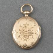 Ovaal 14kt gouden medaillonhanger met bloemdecor, brutogewicht 3,0 gram, 3 cm